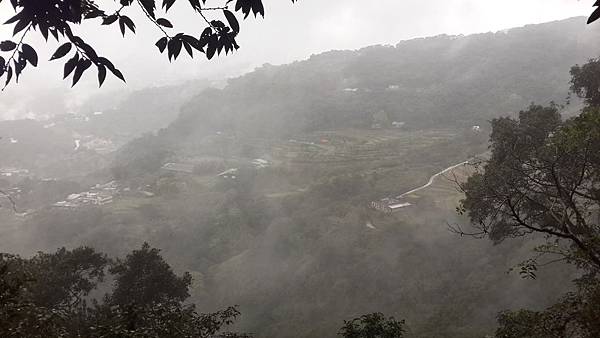 要回頭了,在愈下愈大的雨勢中走來越發寒冷;既曾上階必然要下階,護膝、登山杖不可少,這膝蓋可期望用得長久。林大哥、聰明學長,還有今天開車的coffee人真好;下階到半山腰,便連袂去開車來接我們。我們遂向左轉,沿著一邊是豪宅的大馬路前行,好與車會合。