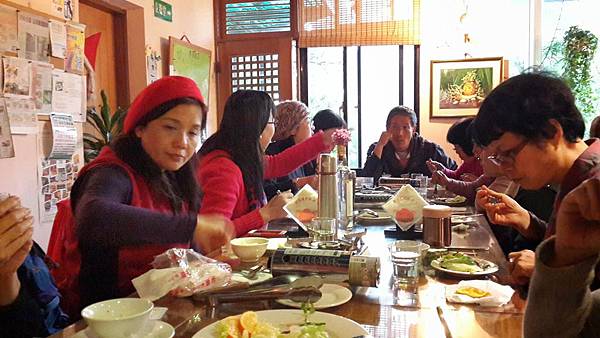 中午在古道入口的森林花園用餐。在淅瀝瀝的雨中有點兒狼狽的閃進餐廳,柔慧