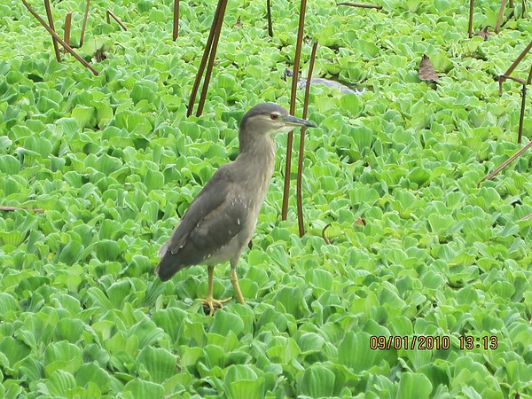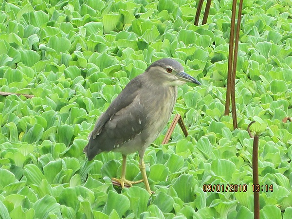 站在枯葉上的鳥兒,一動也不動,對照著枯葉,牠似乎也入定了。 踏在水芙蓉上,豐腴的鳥兒,似乎仍是輕盈的散步著,無所顧忌,迎著微風。 鳥兒沉思 鳥兒看見妳了 那白皙的羽毛,真讓人想用手撫摸,週遭的枯葉,一點兒也無損鳥兒的挺立自賞。 在整片的綠毯上,幾隻水鳥漫步其中,不驚慌、不躊躇、不在乎,就是這樣的輕鬆啊!