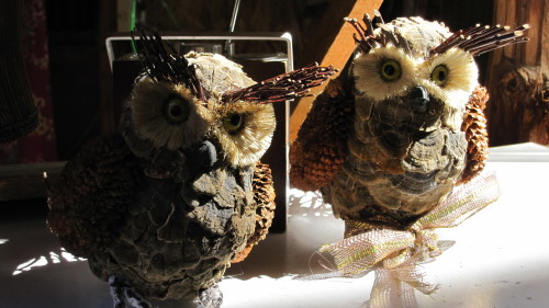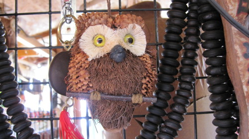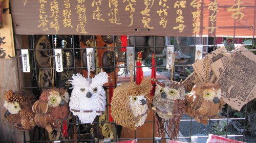 好多貓頭鷹玩偶,上面還有一段話說明貓頭鷹的由來。