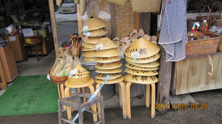 一家小店門口的佈置,白川鄉紀念斗笠。