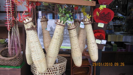 參觀完高山陣屋,沿路的店家不少,這是其中一家販賣的草鞋,很特殊的編織工法。。