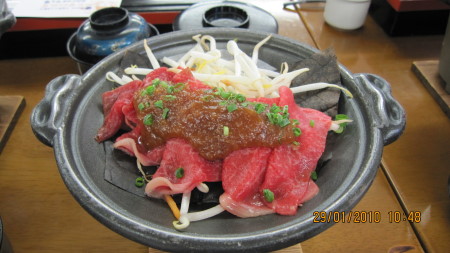 這就是遠近馳名的飛驒ㄊㄨㄛˊ牛肉,不是飛"彈"牛肉喔!份量很少,川燙食用,很滑嫩!