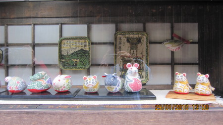 這是一家商店的展示櫥窗,很可愛的生肖玩偶:馬、羊、猴、雞、狗、豬。