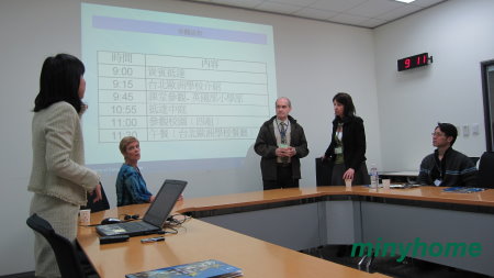 前排三位外國人士便是英法德三部的校長,他們各自負責一部,也是一棟建築物管理。左邊這位小姐便是簡報人員,負責公關接待,原是募款人員。他表示歐洲學校可說是家長的學校,因無政府補助款,全靠家長捐款,每棟校舍均是由家長出資,學費都是用來支付教師的薪水,每年每個學生幾乎繳30萬元學費。本校教師均比照原國家標準,且本地要提供住宿。學生來源有56個國家,至多1200人為上限。學生3~18歲,直升高中,課程與其本國相同,以便於銜接。