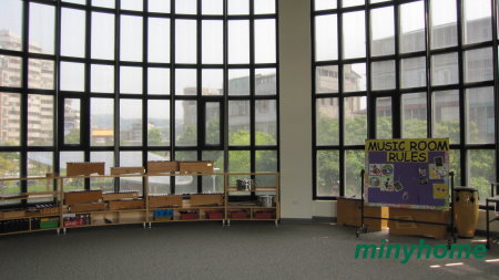 音樂館所有的樂器全擺放在教室周圍,隨時可依需求使用。本校加班最多的人員便是藝文科教師,因為活動很多,均要假日帶學生製作海報、道具、裝扮等。