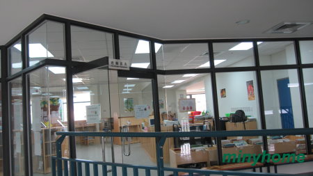 這是進入校門後左側的亭子,右邊也是一樣的建築,都是採用粗條角鋼玻璃構造,很堅固又透光。