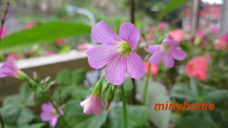 這麼美的小花,你曾細看過它嗎?任何一塊地方,都有它的蹤跡,生命力最強的小花,非它莫屬。紫花酢漿草,名字不好唸,因為要唸ㄗㄨㄛˋ,不是ㄓㄚˋ。葉子是三片,若發現四片的,便是幸運草了,其實是變種的。看似花莖的部份其實是花絲,地下有鱗莖,塊根長得像是小蘿蔔的形狀。葉片就是掌狀複葉,晚上會閉合下垂,天亮後又再展開。葉片葉柄可當成童玩,撕開外部,連著葉片的細絲,可用來互相拉玩,看誰被扯掉,也可繞在一起,便成草毽子。