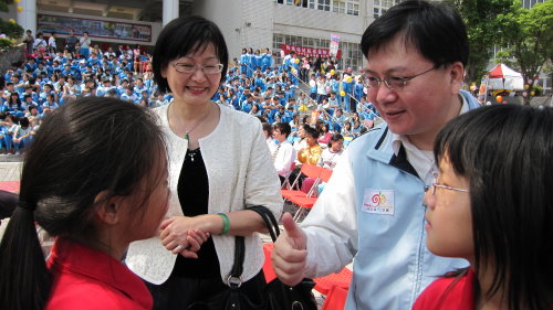 表演完後,駐區王督學和張校長非常肯定小朋友的演出,還豎起大拇指稱讚呢!
