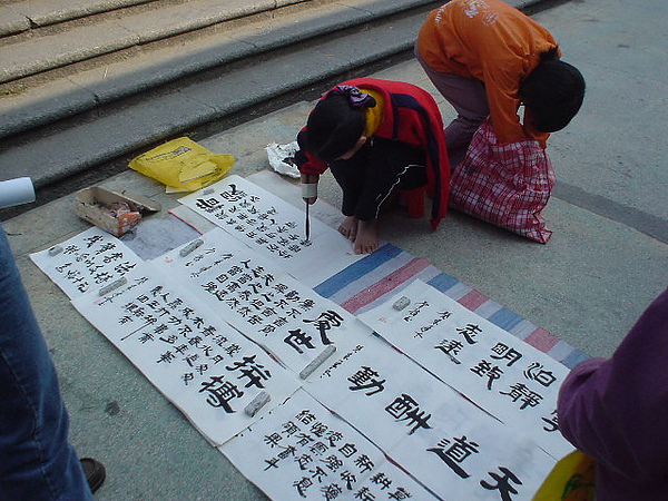 有的人乾脆扔下錢而沒有拿走應拿的字,大家除了同情,就是尊敬她。